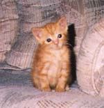 My cat Andy (I have two, the other is a black angora named Lucifer) was found in a gutter in the middle of a rain storm. Although he's grown now, this is my favorite picture of him, just a day after he was found. Andy's a really great cat...very friendly, sleeps with me every night, and he rarely is far from my side when I'm home. Unfortunately, he prefers that I remain home, and if I leave for more than a couples of days or so, he let's me know he's not pleased by peeing in my bed. A pain in the ass to be sure. Ah well, at least he loves me. |